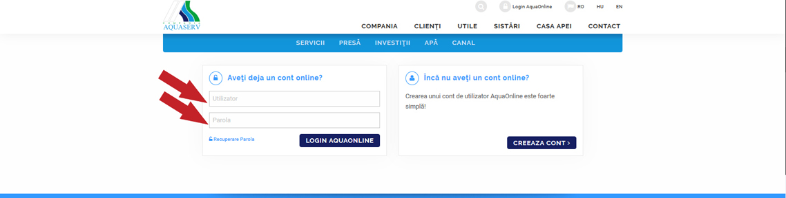 Instructiuni logare cont AquaOnline