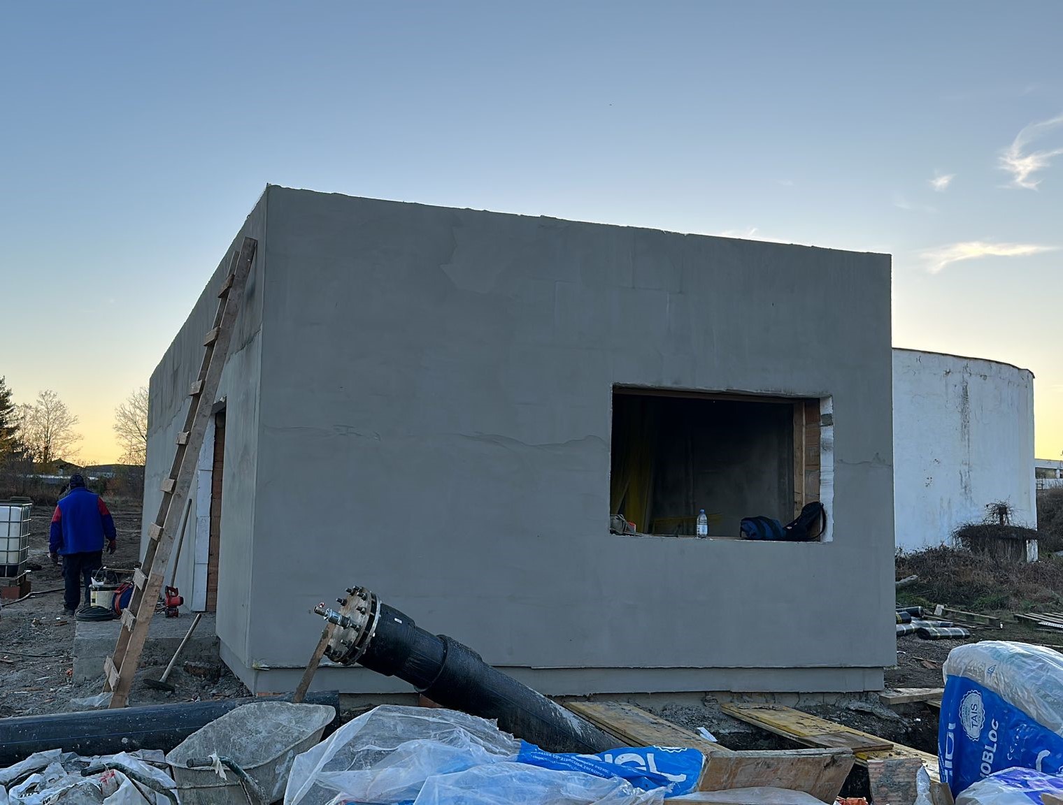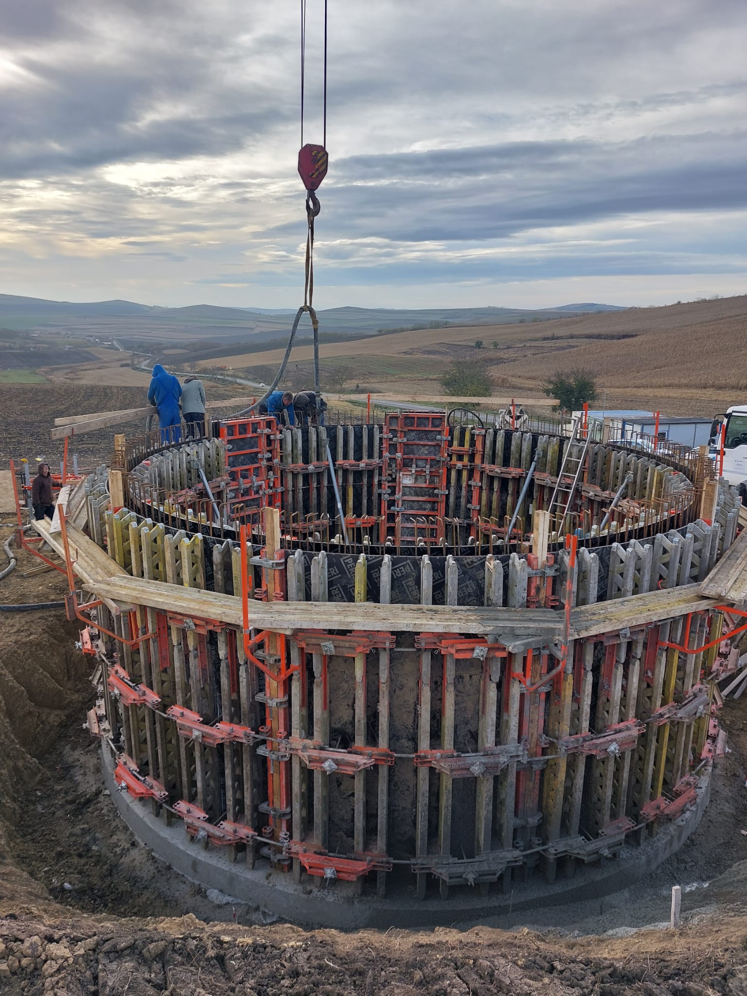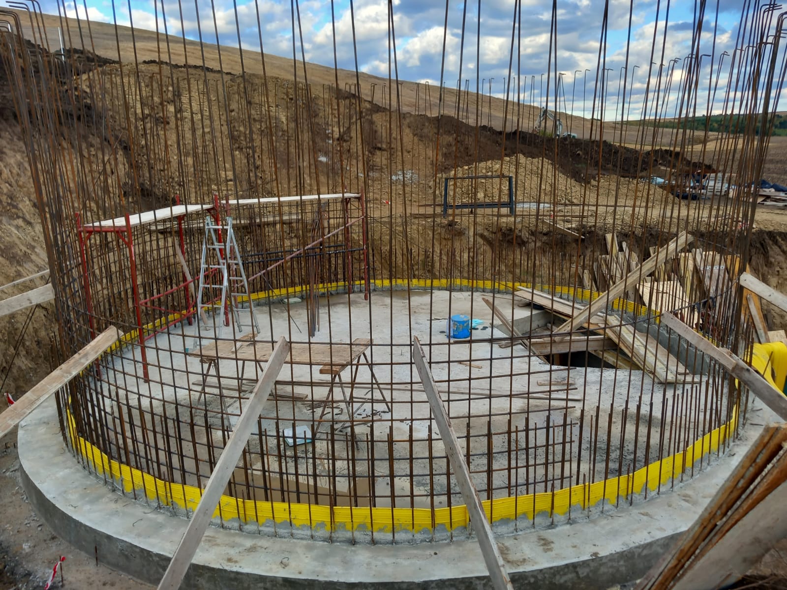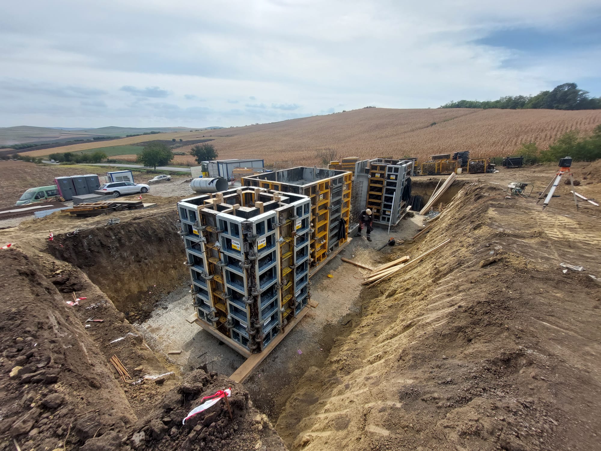 • Rețeaua de transport este finalizată, iar la unul dintre rezervoare au fost turnați pereții.