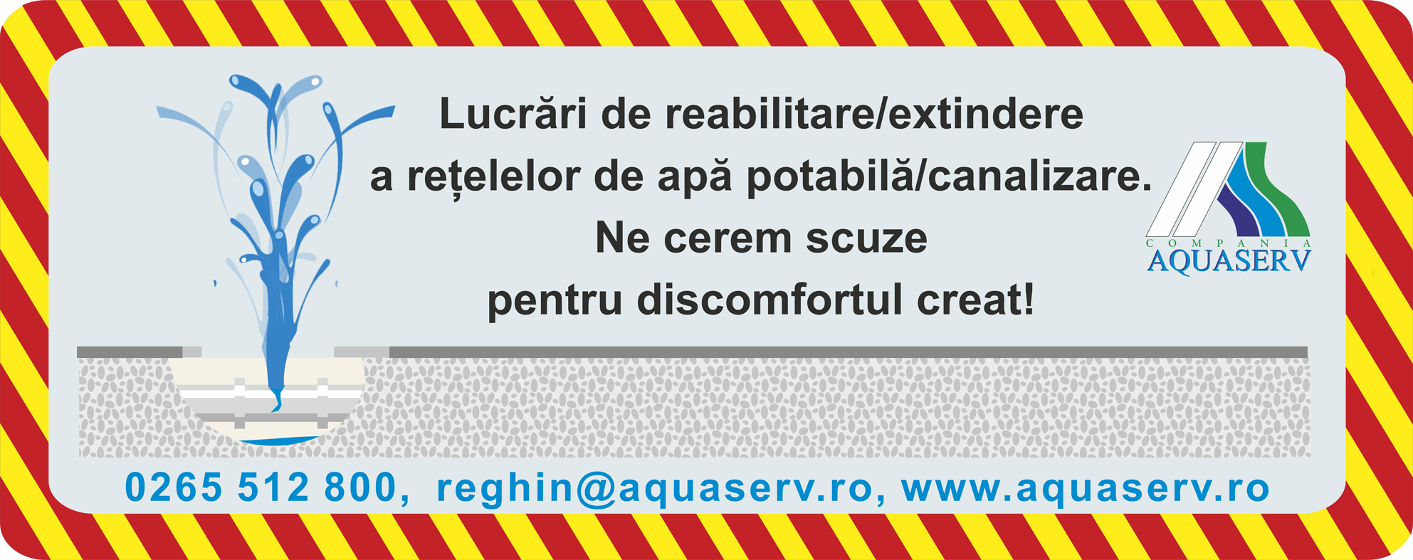 Compania AQUASERV S.A. sucursala Reghin vă aduce la cunoştinţă că, pe perioada de execuţie a lucrărilor, în zonele menţionate, circulaţia se va desfăşura cu anumite restricţii.