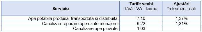 Având în vedere cele de mai sus, Compania AQUASERV S.A. a obținut aprobările legale pentru ajustarea tarifelor, conform tabelului: